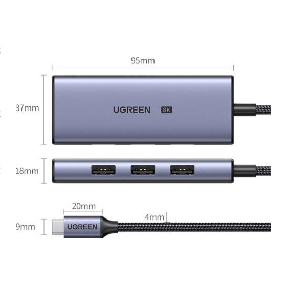 Bộ chuyển đổi USB-C sang 3xUSB 3.0+HDMI hỗ trợ 8K Ugreen 50629 trang bị thêm cho bạn 3 cổng USB 3.0 để có thể dễ dàng kết nối hoặc truyền dữ liệu từ các thiết bị khác.