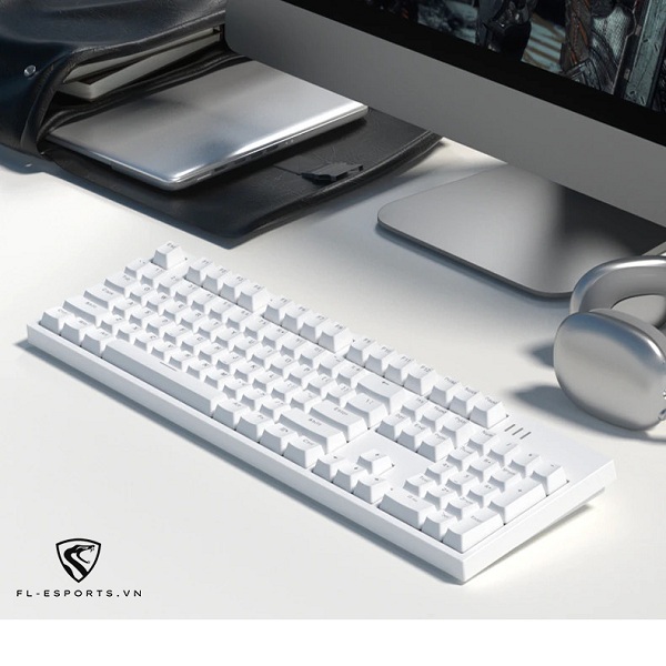 Bàn phím cơ có dây FL-Esports MK104 Pro White Outemu Switch có thiết kế đơn giản và tinh tế, màu sắc chủ đạo là màu trắng. Thiết kế đơn giản này thường phù hợp với nhiều phong cách nội thất và không gian làm việc.