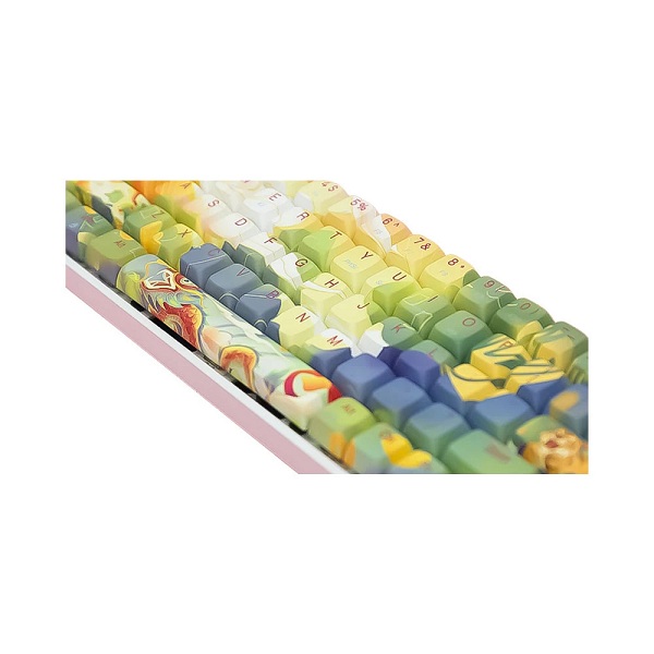 Bàn phím được trang bị keycap PBT (Polybutylene terephthalate) và XDA profile. Keycap PBT là một loại chất liệu phổ biến trong các bàn phím cơ cao cấp, nó có độ bền cao và khả năng chống mài mòn tốt, giúp các phím gõ không bị mờ sau thời gian sử dụng. XDA profile là một kiểu dáng keycap thiết kế đơn giản, mang lại cảm giác gõ phím thú vị và khác biệt.