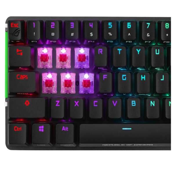 Bàn phím Gaming Asus ROG Falchion NX với thiết kế 68 phím, bố cục nhỏ gọn giúp người dùng dễ dàng thao tác phục vụ cho nhu cầu của mình. Công tắc cơ học ROG NX trên bàn phím với khả năng truyền động nhanh và các đường cong lực do ROG điều chỉnh cho cảm giác và phản hồi khi gõ phím tuyệt vời