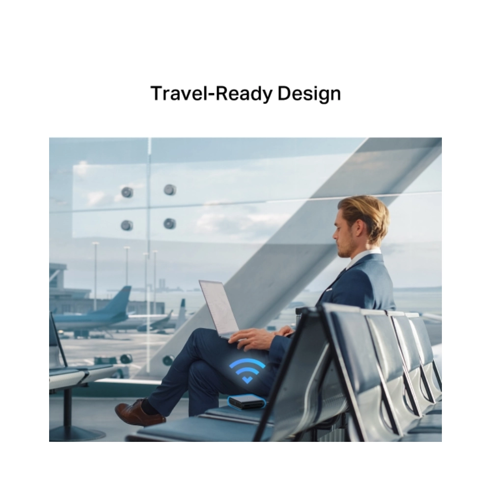 Thiết kế nhỏ gọn khiến router dễ đặt ở bất kỳ đâu: bàn làm việc, kệ TV, góc phòng, hoặc mang theo trong túi phụ kiện. Với router di động, sự gọn gàng ảnh hưởng trực tiếp tới tần suất bạn thật sự mang đi dùng. Một thiết bị càng nhỏ và dễ cấp nguồn, bạn càng có xu hướng đem theo, từ đó “lúc cần là có mạng riêng” đúng nghĩa.