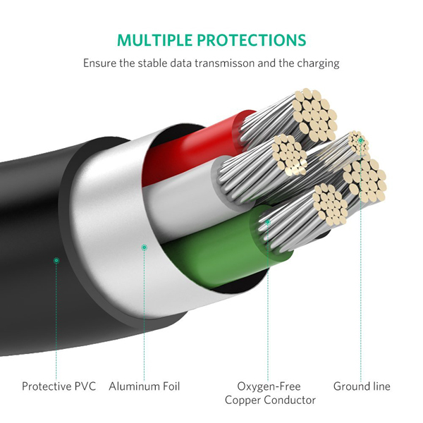 Cáp USB 2.0 sang Mini USB dài 1M Ugreen 10355 có độ bền cao, đầu nối mạ vàng 24K chống ăn mòn, dây dẫn thuần đồng 100% chống oxy hóa giúp tăng tuổi thọ cho sợi cáp và mang đến khả năng dẫn truyền tín hiệu ổn định, tối ưu nhất.