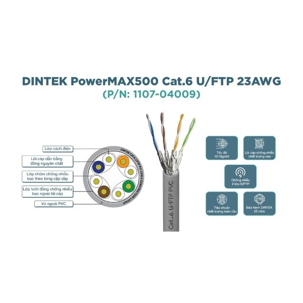 | Số lõi dây | Thiết kế 4 cặp dây xoắn đôi, lõi đồng nguyên chất chuẩn 23AWG |