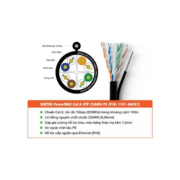 | Số lõi dây | Thiết kế 4 cặp dây bọc HDPE, lõi đồng nguyên chất chuẩn 23AWG (0,56mm) |