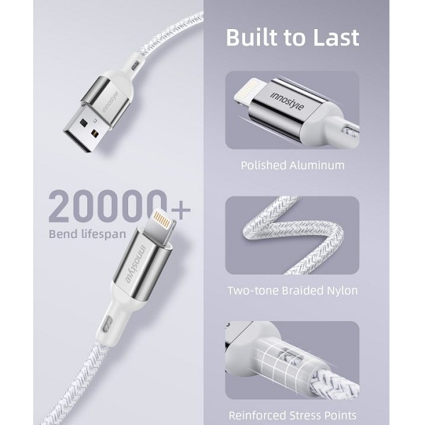 Cáp USB-A to Lightning INNOSTYLE PowerFlex MFI 1.5m 12W IAL150ALSV là một sản phẩm đáng tin cậy và tiện ích, cung cấp tốc độ cao và độ bền cao để đáp ứng nhu cầu sạc và truyền dữ liệu hàng ngày của bạn.