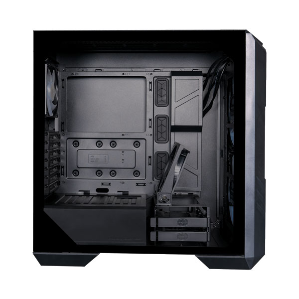 Case CoolerMaster HAF 500 sở hữu mặt bên bằng kính cường lực được cố định bằng các chốt để dễ dàng tháo lắp, tạo điều kiện truy cập nhanh vào bên trong mà không cần sử dụng công cụ. Một vít tùy chọn có thể được lắp đặt để cố định thêm mặt kính cường lực.