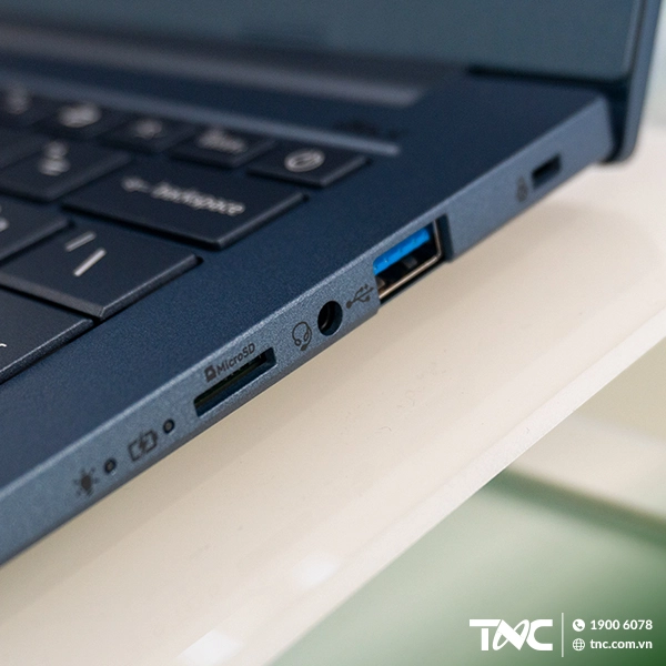Laptop Acer Swift 14 AI sở hữu nhiều cổng kết nối hiện đại và tiện lợi, bao gồm 2 cổng USB Type-C hỗ trợ Thunderbolt 4 và DisplayPort, 2 cổng USB Type-A, và cổng HDMI 2.1. Điều này giúp bạn dễ dàng kết nối với các thiết bị ngoại vi như: màn hình ngoài, ổ cứng, chuột, bàn phím, và các thiết bị điện tử khác.