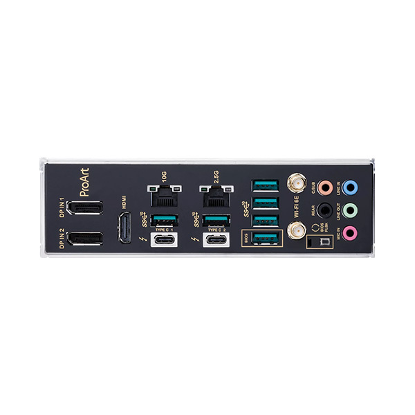 Mainboard Asus Proart Z690-Creator Wifi D5 trang bị đa dạng và đầy đủ kết nối bạn cần: Thunderbolt 4 Type-C, Ethernet 10 Gb & 2.5 Gb trên bo, WiFi 6E, khe PCIe 4.0 M.2 và cổng USB 3.2 Gen 2x2
