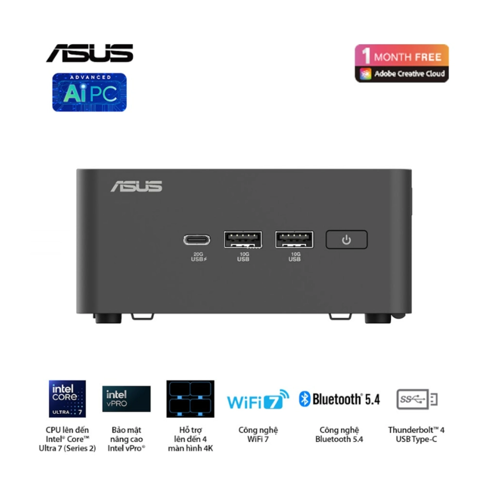 Máy bộ Asus Mini PC NUC 15 Pro Tall RNUC15CRHC500000I là một sản phẩm mini PC hiệu suất cao, lý tưởng cho các doanh nghiệp, văn phòng, và các nhu cầu sử dụng cá nhân đòi hỏi một hệ thống mạnh mẽ nhưng tiết kiệm không gian. Được trang bị bộ vi xử lý Intel Core i5 210H với tốc độ lên đến 4.8GHz, bộ nhớ DDR5 5600 MHz và khả năng hỗ trợ tối đa 96GB RAM, cùng các ổ cứng SSD PCIe Gen4 tốc độ cao, máy tính này mang đến khả năng xử lý mượt mà và hiệu quả cho mọi tác vụ từ công việc văn phòng, sáng tạo nội dung đến các ứng dụng đòi hỏi tính toán nặng.