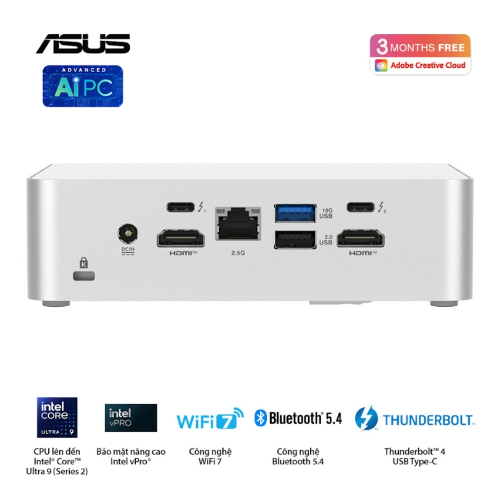 | Cổng kết nối | 1 x USB 3.2 Gen2 Type-A, 1 x USB 2.0 Type-A, 1 x RJ45 LAN, 1 x DC-in, 1 x Kensington Lock, hông) 1 x USB 3.2 Gen2x2 Type-C, 2 x USB 3.2 Gen2 Type-A |
