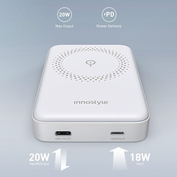 Sạc dự phòng Innostyle POWERMAG 15W 2 IN 1 Stand 10.000mAh PD 20W – IS20PDWHT (Màu trắng) là một lựa chọn đa năng và tiện lợi cho người dùng di động. Với khả năng hỗ trợ sạc không dây và nhiều giao tiếp linh hoạt, nó sẽ đáp ứng được nhu cầu sạc cho nhiều thiết bị di động khác nhau một cách thuận tiện và hiệu quả.
