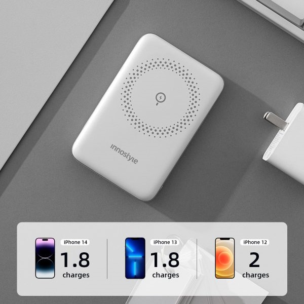 Sạc dự phòng Innostyle POWERMAG hỗ trợ các mức điện áp sạc không dây từ 5W đến 15W, cho phép bạn điều chỉnh công suất sạc phù hợp với thiết bị di động của bạn.
