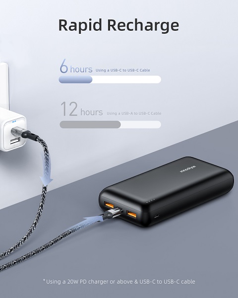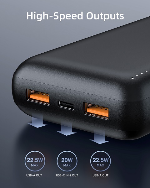 Điện áp tối đa của sạc dự phòng là 20W, cho phép bạn sạc nhanh chóng và hiệu quả cho các thiết bị của mình, đồng thời giữ cho chúng an toàn và bảo vệ pin của chúng khỏi hư hỏng.