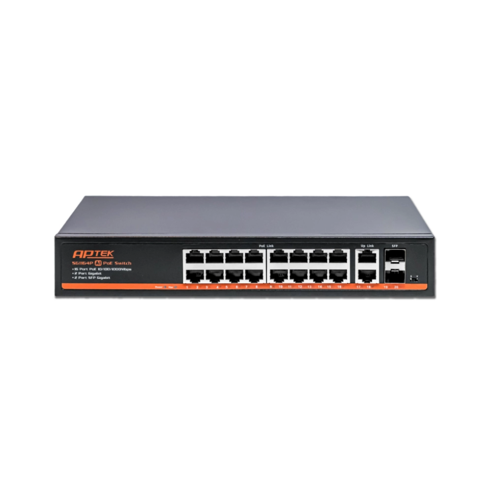 | Cổng kết nối | 16 x 1 Gbps PoE+ RJ-45, 2 x 1 Gbps RJ-45, 2 x 1 Gbps SFP |